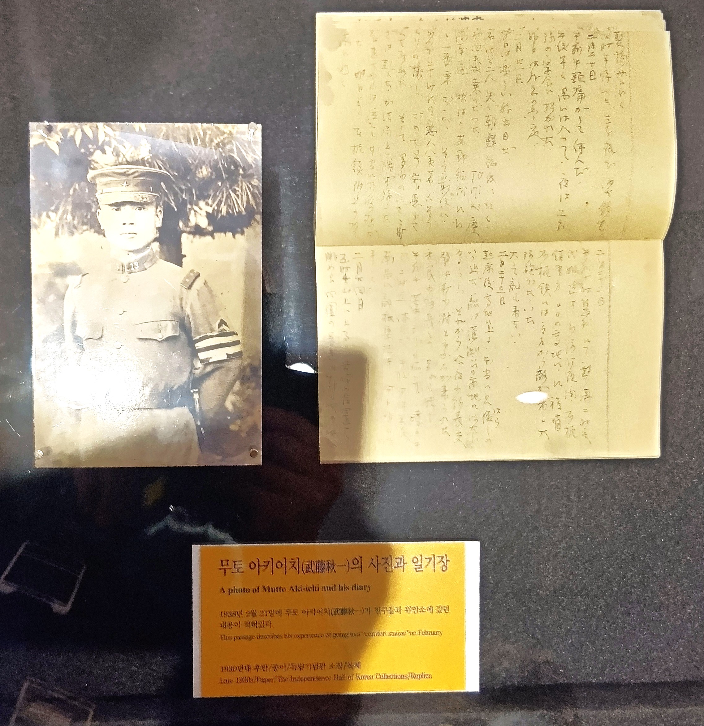 (承前)そして、その横には、一人の軍人の写真と日記帳があります。日記の中には友人と慰安所に行ったという記録が残されています。ある日本人がより多くの人々に歴史の真実を伝えてほしいと、父親の残した日記と写真を寄贈してくれたものです」