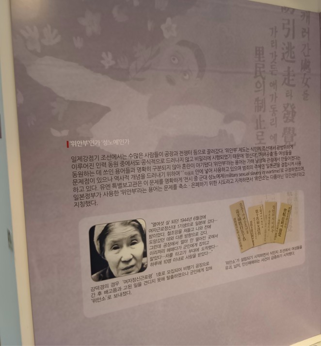オーディオガイドは続ける。「日本軍『慰安婦』問題も戦争とともに生まれ拡大した犯罪です。戦争がどれほどおそろしい方法で、人の暮らしを壊すか、とりわけ女性の人生をいかに破壊するかを最も極端に示す例です。何よりもこのような犯罪が(続く)