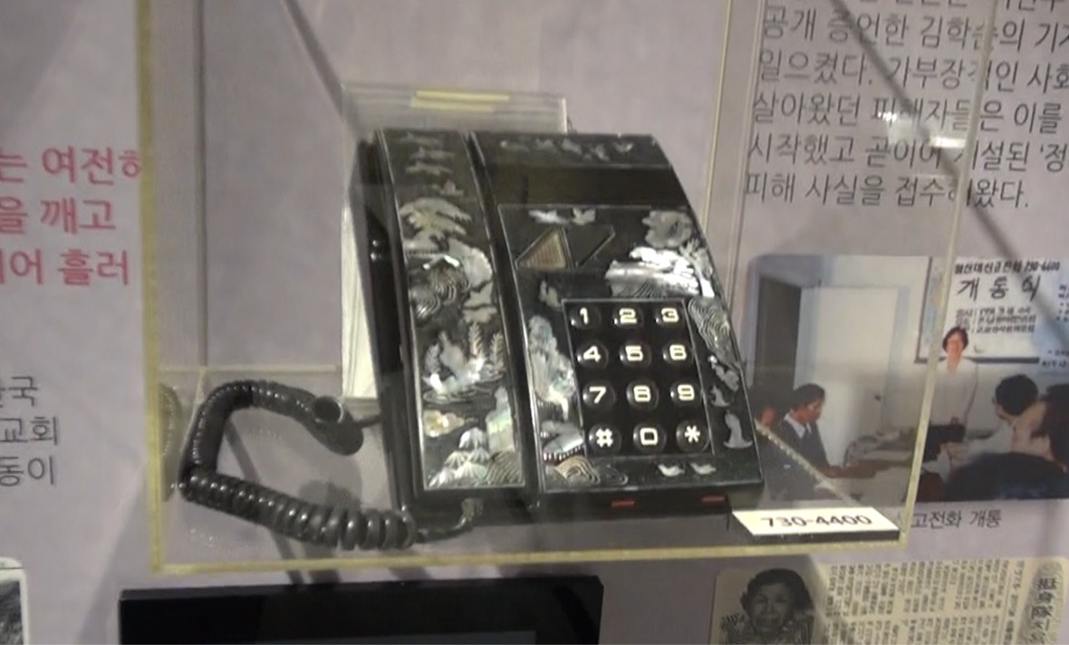 (承前)日本政府にたいし、キム・ハクスン(金学順)ハルモニが『私が被害者で証人だ』と勇気を出して公開記者会見を行った様子が映像で流されています。キム・ハクスン・ハルモニの勇気は、多くの被害者たちの沈黙をやぶることになりました。当時、申告を受けた電話も展示されています」(続く)